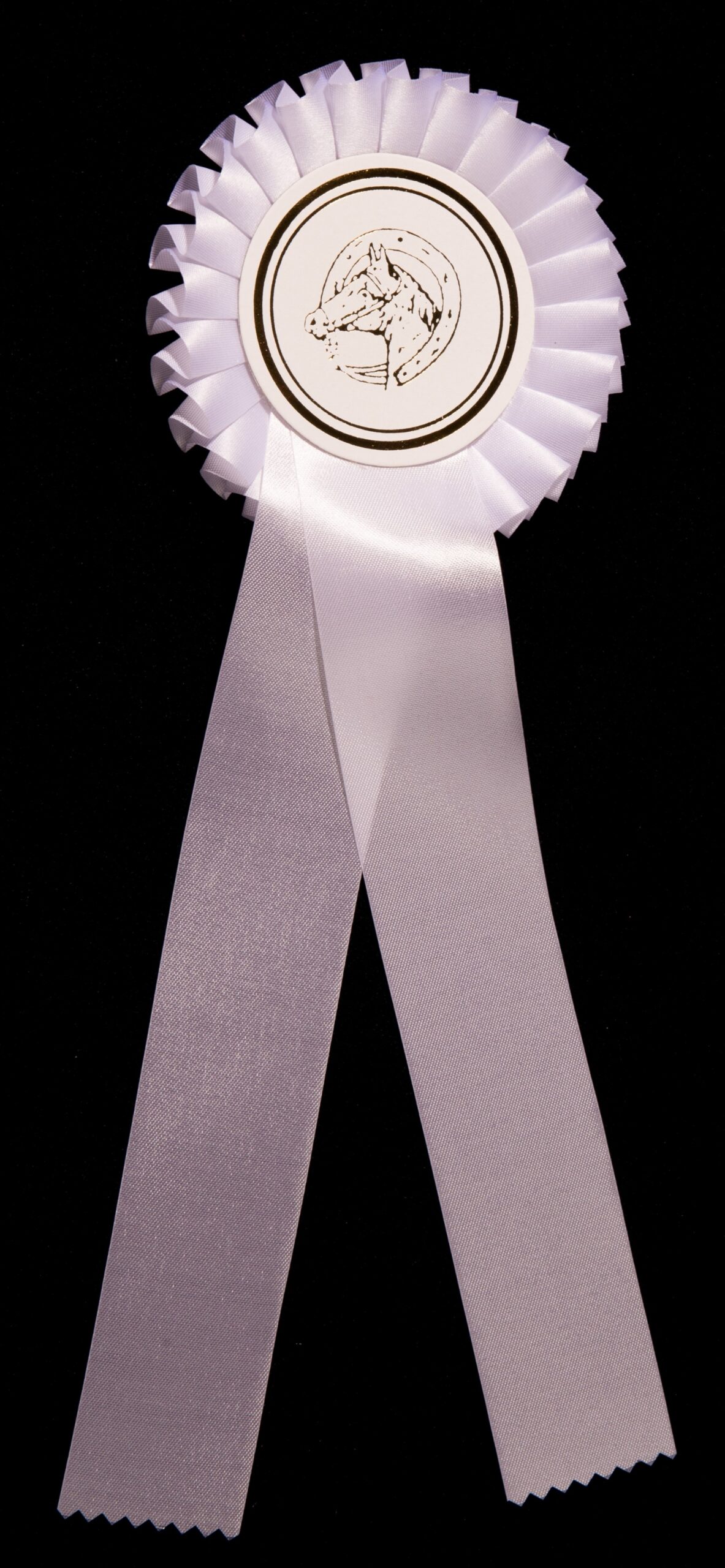 Plissierte Einfachrosette (individuell gestaltbar), einem Durchmesser der Schleife von ca. 11 cm, Button einem Buttondurchmesser von 65 mm, 2 Bänder je 25 cm lang, Bandbreite 4 cm, Gesamtlänge der Schleife ca 31 cm